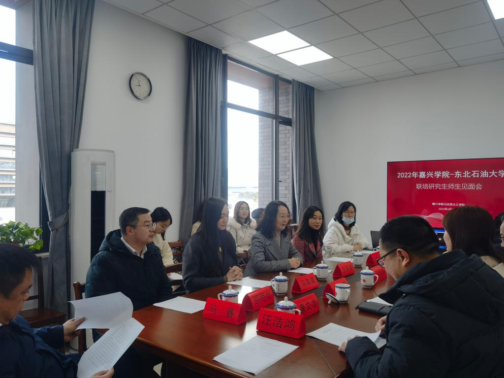 王鹤岩院长感谢嘉兴学院四年来为两校培养了优秀研究生,并表达了联培模式对东北石油大学研究生培养的意义和作用。副书记马苒苒详细介绍了2020级5位联培研究生情况,并就联培研究生的党员发展和培养、综合素质测评等研究生教育管理工作做了交流。