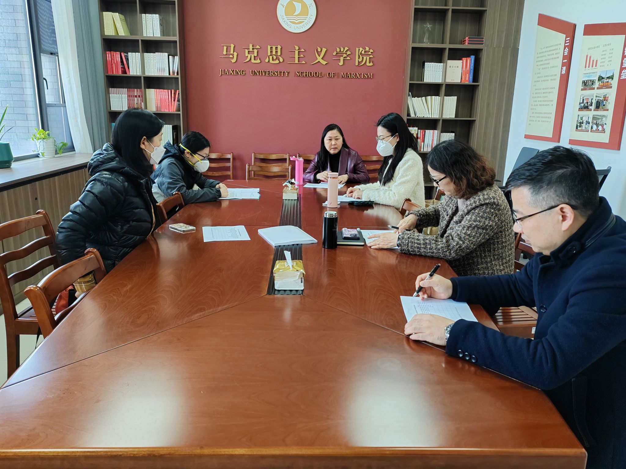 召开2023-2024学年青年教师助讲培养中期检查座谈会,学院3位青年教师和导师们参加座谈,座谈会由许惠芬副院长主持。