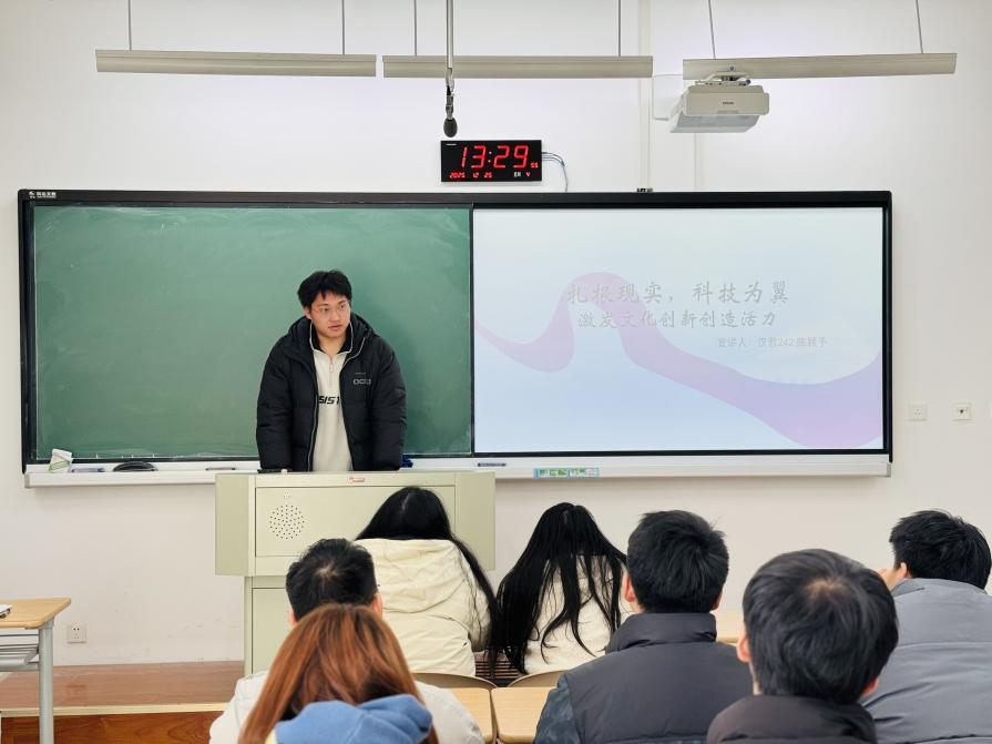 文法学院陈顾予同学聚焦文化创新,分析《人世间》《山海情》等作品引发共鸣的原因——扎根人民生活、刻画平凡命运,实现“以文化人”。他认为,在数字技术快速发展的今天,文化表达方式更应与时俱进,让优秀传统文化真正活起来、传下去。