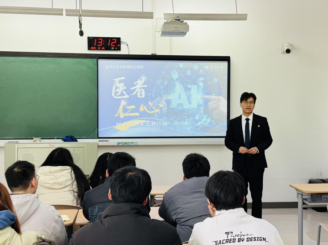 医学院钟善男老师以“医者仁心,AI时代的第三种心跳”为题,通过三代医者的故事,阐释科技与人文在医学领域的融合。他强调,算法能处理数据,却无法替代医者对生命的体察与关怀,唯有科技与人性共鸣,才能真正彰显健康中国的价值内核。