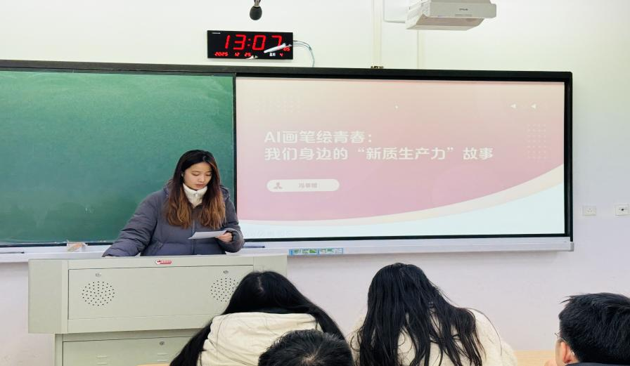 设计学院冯莘娅同学以AI辅助设计为例,展现新质生产力对文化创意的赋能作用。她认为,技术并非替代人类,而是拓展创造力边界,青年应积极学习运用新技术,在创作与实践中培育创新思维。