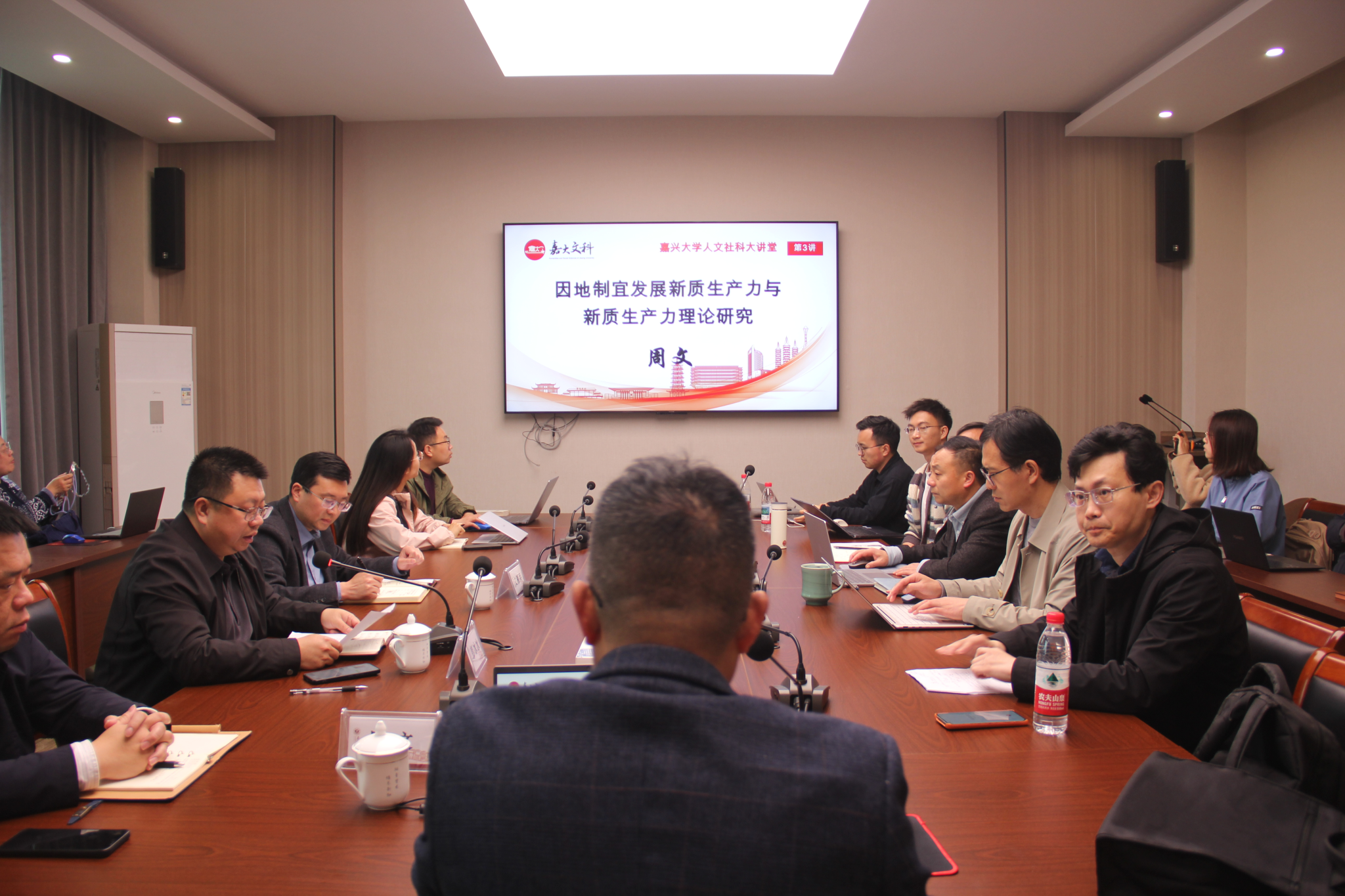 人文社科大讲堂第3讲在厚德楼350会议室顺利举行。教育部“长江学者”特聘教授、复旦大学马克思主义经济学中国化研究院周文教授应邀做题为《因地制宜发展新质生产力与新质生产力理论研究》专题学术报告。文雁兵副校长出席并致辞,人文社科处处长彭冰冰主持本次活动,童颜巨乳