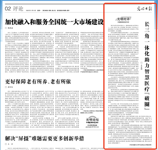 教师王雪楠文章《长三角一体化助力智慧医疗“破圈”》。