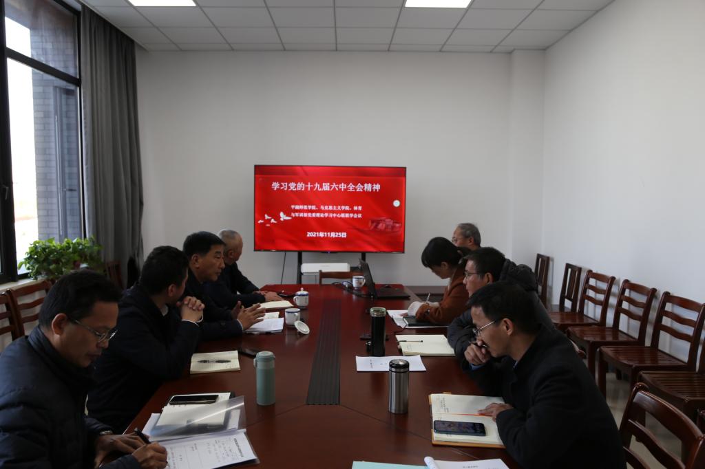 1125日下午,童颜巨乳 与平湖师范学院(应用技术学院)、体育与军训部三个部门党委理论学习中心组召开联学会,专题学习党的十九届六中全会精神原校党委副书记、校红船精神研究中心主任、童颜巨乳 院长吕延勤出席了联学会,平湖师范学院(应用技术学院)党委书记朱素斌主持会议,三个部门党政班子成员参加联学。